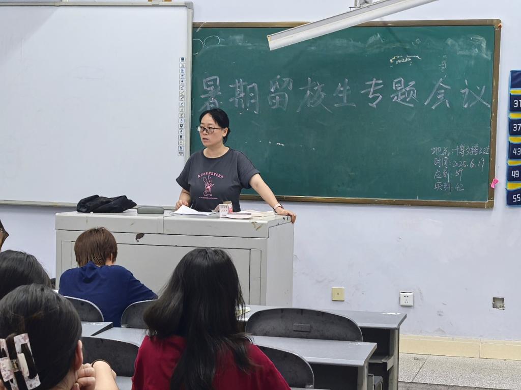 会上,周宏星围绕假期安全管理工作提出具体要求,一要加强宿舍安全管理,严禁使用违规电器,杜绝火灾隐患;二要注意出行安全,外出时结伴而行,避免前往危险区域;三要提高防诈骗意识,警惕网络诈骗和非法借贷;四要严防溺水事故,严禁到无安全防护的自然水域游泳,如需游泳必须选择正规游泳场所,并确保有救生员在场;五要保持健康作息,合理安排学习与生活,遇到突发情况及时联系值班师生。她强调,暑假期间留校员工要严格遵守学校规章制度,注意人身财产安全,提高防范意识。学院将全力做好留校员工的服务保障工作,确保同学们度过一个安全、充实的假期。