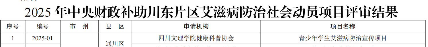 7月9日,学院健康科普协会青少年员工艾滋病防治宣传项目经评审,成功获批2025年中央财政补助川东片区艾滋病防治社会动员项目。
